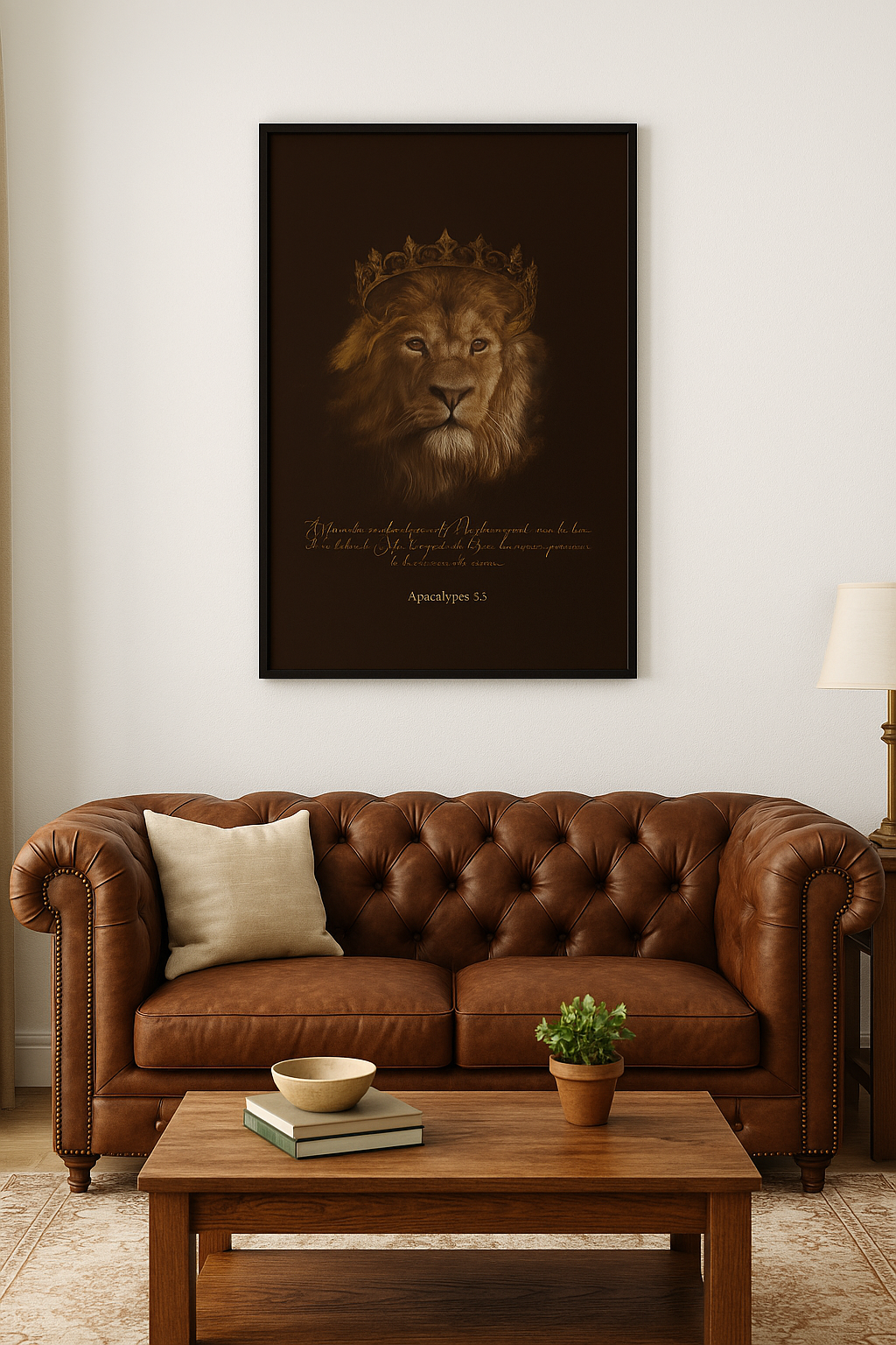 Entrez dans l’univers de Kainos Designs avec notre pièce maîtresse : Lion de Juda, une toile XXL unique.